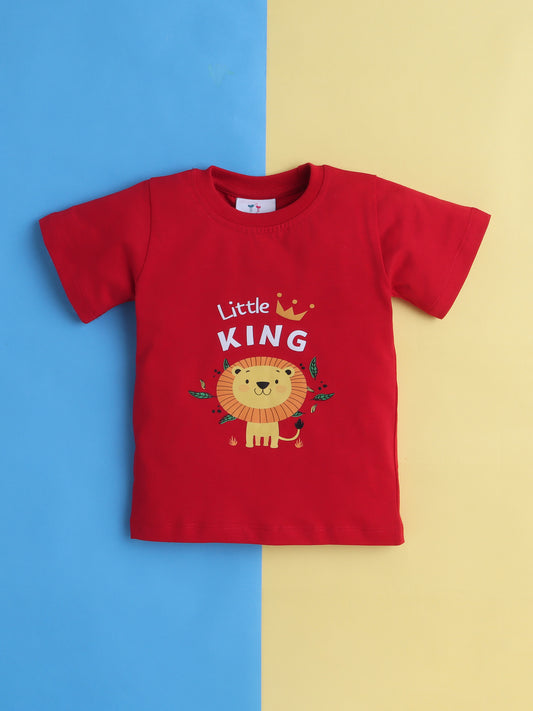 Boys' Cotton Playday Shorts Set with Cute Lion Print- Red