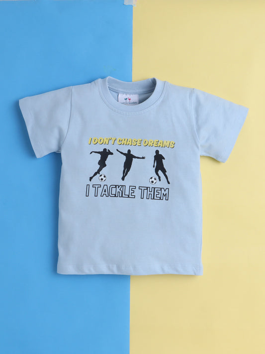 Boys' Cotton Playday Shorts Set with Fun Football Print- Light Blue