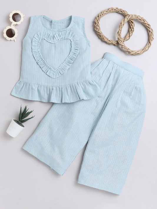 Blue Coord set with heart detailing on the Top and Pleated Pants