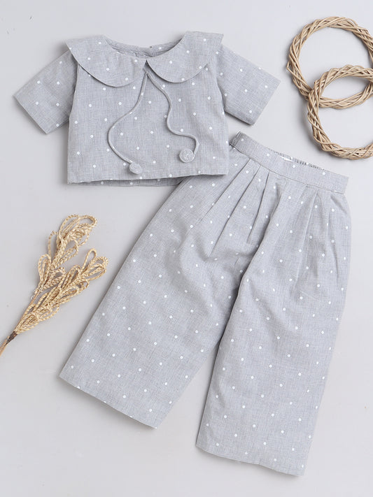 Grey Polka Dots Coordset with Crop top and Pleated Pants