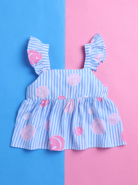 Blue and White Stripes Coord set with Smileys and Pleated Pants