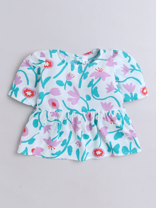 Multi Colour Tulip Print Coord set with Crop top and Pleated Pants