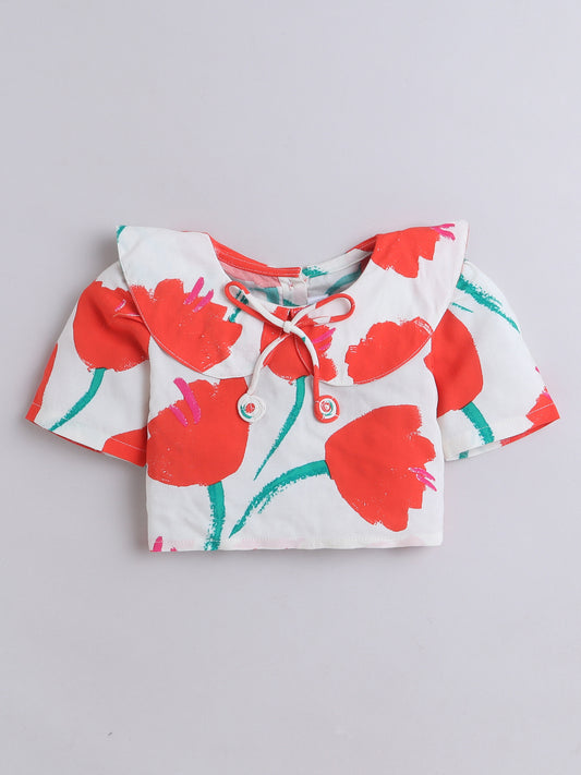 Red Tulips Coord set with Crop top and Pleated Pants