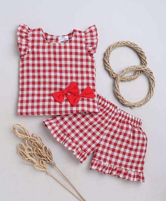 Red and White Checks Coord set with Shorts and top with Cute Bows