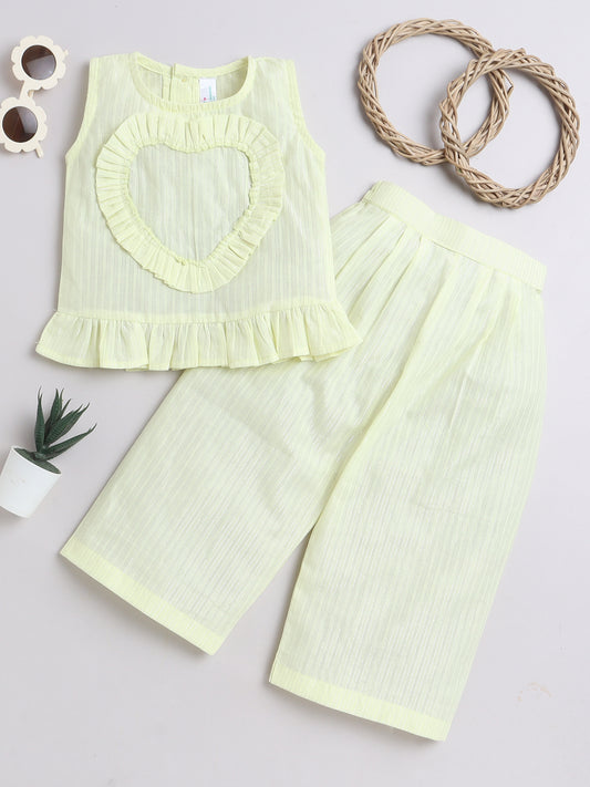 Yellow Coord set with heart detailing on the Top and Pleated Pants