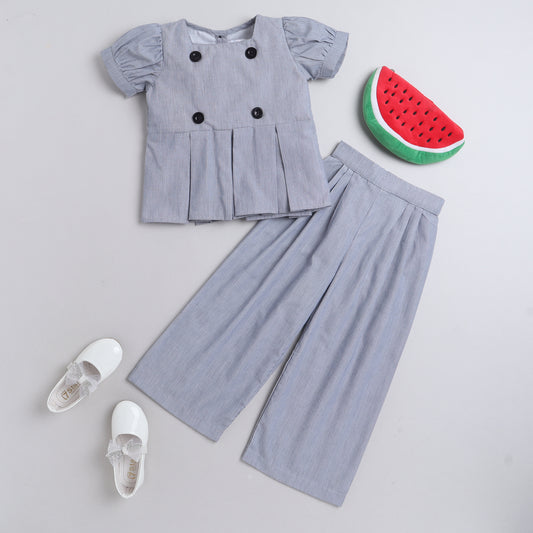 Black Stripes Coord set with Pants and Buttons Detailing