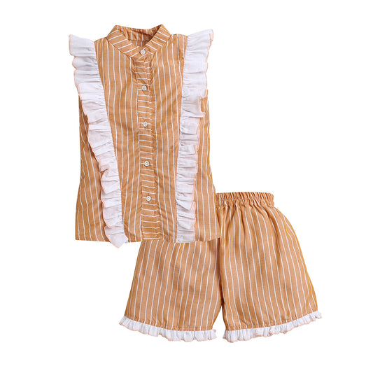 Mustard Coord Set- Shirt with Frill and Shorts