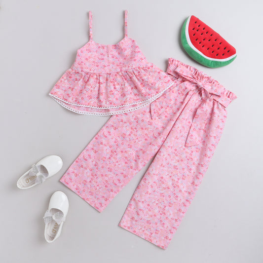 Pink Floral Printed Coord Set With Pants