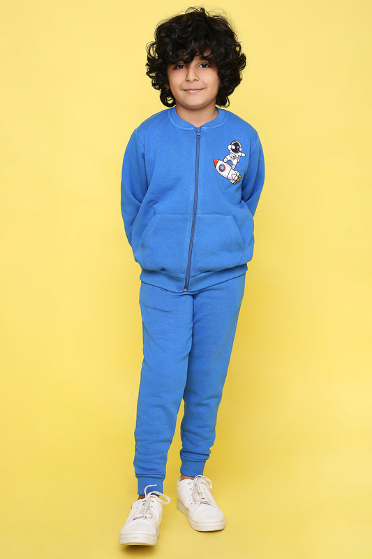Knitting Doodles Kids' Jogger Set with Warm Fleece and Smart Rocket Print- Blue