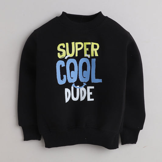 Knitting Doodles Fleece Boy's Black Round Neck Cool Dude Print Jogger Set-Black