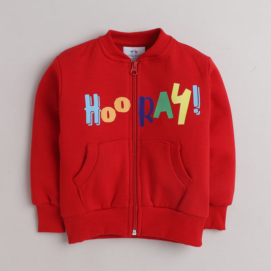 Knitting Doodles Fleece Kid's Red Round Neck Hooray Print Jogger Set-Red