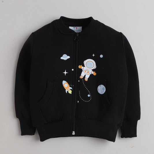 Knitting Doodles Fleece Kid's Black Round Neck Space Print Jogger Set- Black