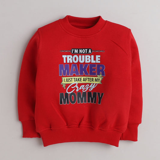 Knitting Doodles Kid's Red Round Neck Troublemaker Print Jogger Set-Red