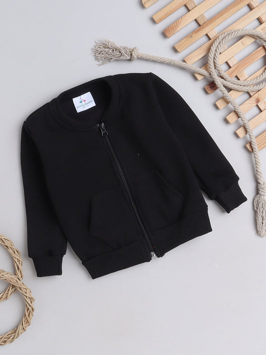 Knitting Doodles Fleece Kid's Black Round Neck Space Print Jacket-Black