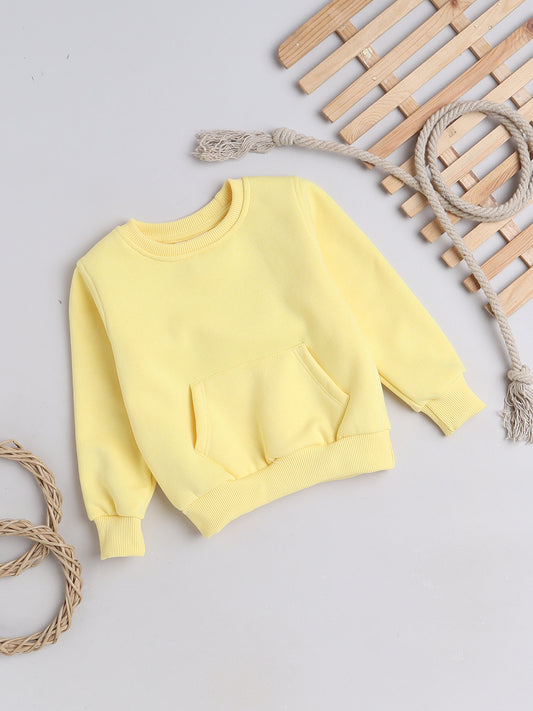 Knitting Doodles Kid's Sweatshirt with Warm Fleece and Pocket in front- Light Yellow