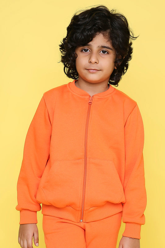 Knitting Doodles Kid's Jacket with Warm Fleece- Orange