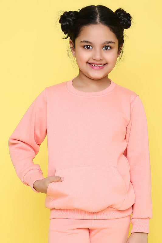 Knitting Doodles Kid's Sweatshirt with Warm Fleece and Pocket in front- Peach