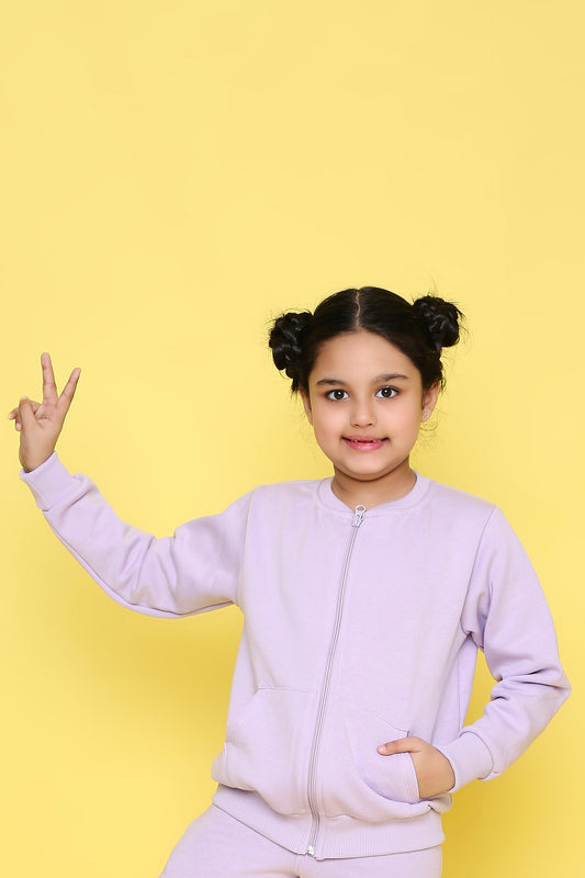 Knitting Doodles Kid's Jacket with Warm Fleece- Purple