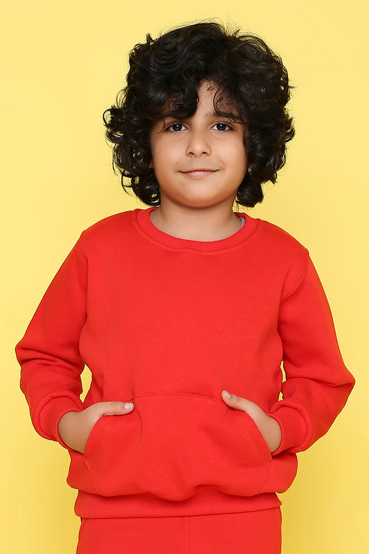 Knitting Doodles Kid's Sweatshirt with Warm Fleece and Pocket in front- Red