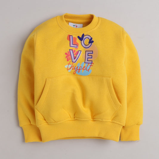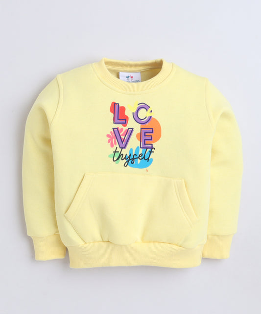 Love Thyself Print Sweat Shirt with Fleece Lining- Light Yellow