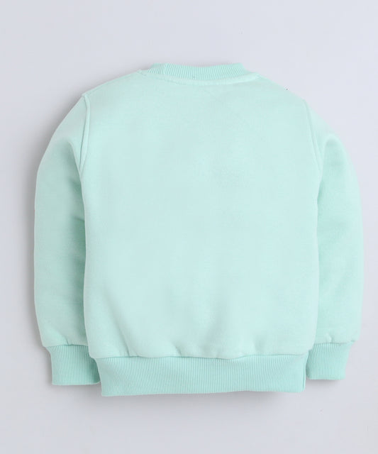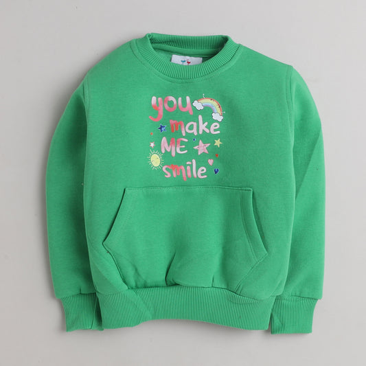Make Me Smile Print Sweatshirt with Fleece Lining- Green