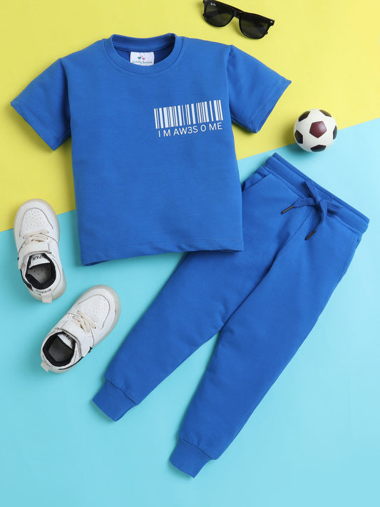 Boys' Terry Jogger Set with I am Awesome Print- Blue