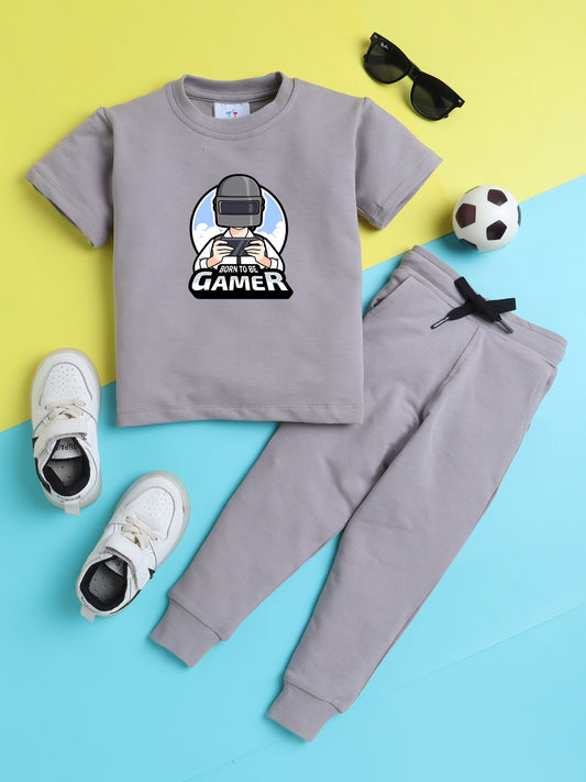 Boys' Terry Jogger Set with Born To Be Gamer Print- Grey