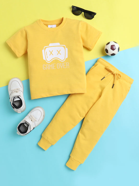 Boys' Terry Jogger Set with Game Over Print- Yellow