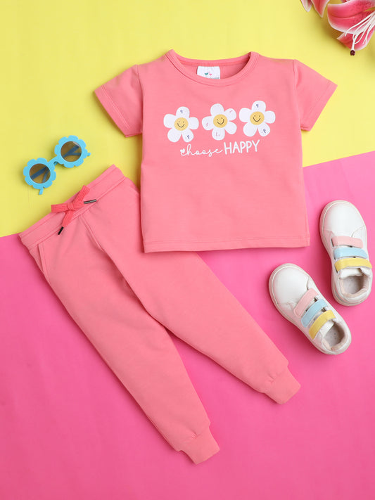 Girls' Terry Jogger Set with Choose Happy Print- Pink