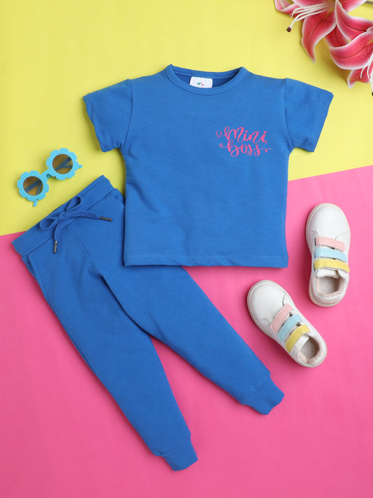 Girls' Terry Jogger Set with Mini Boss Print- Blue