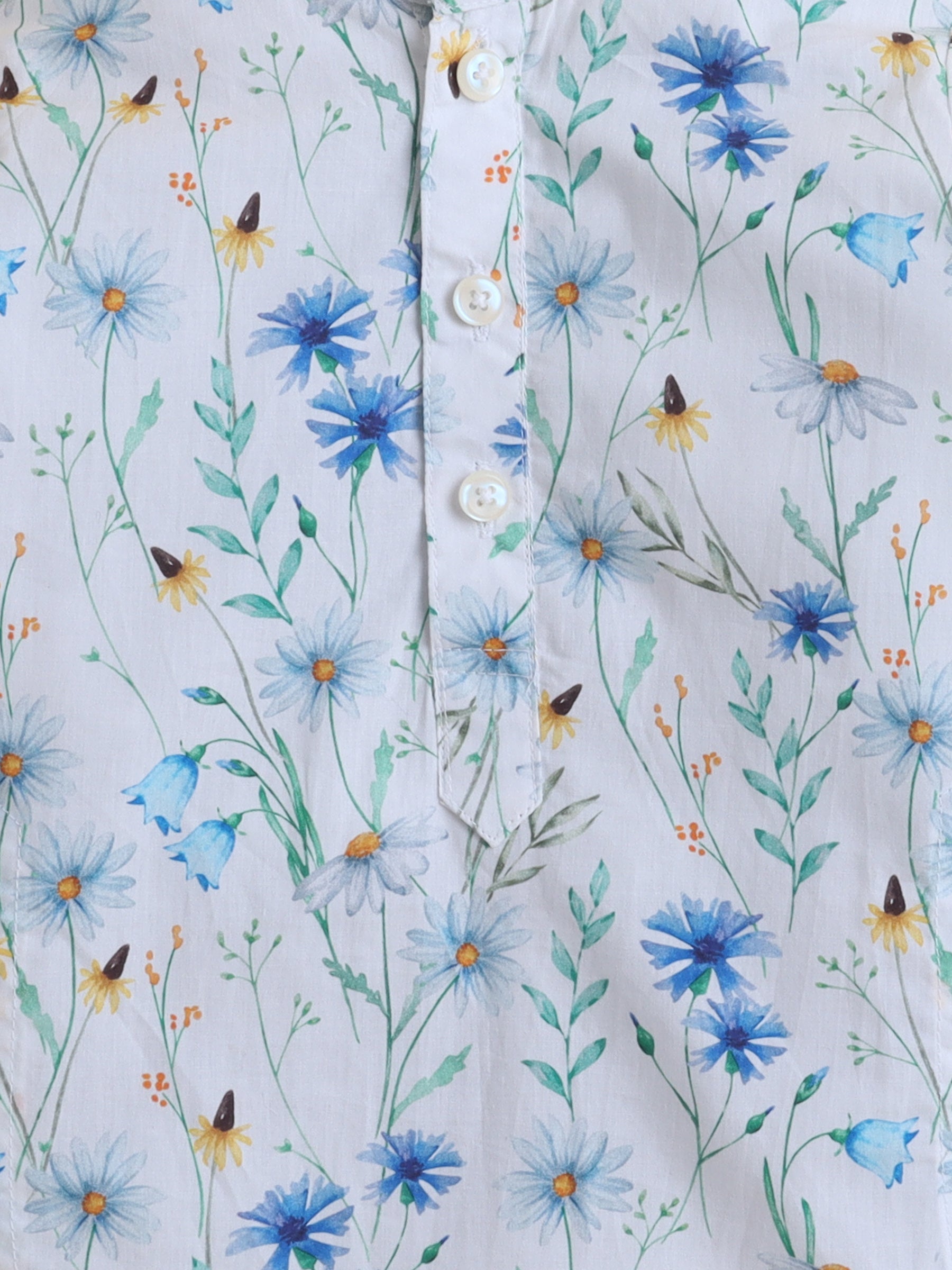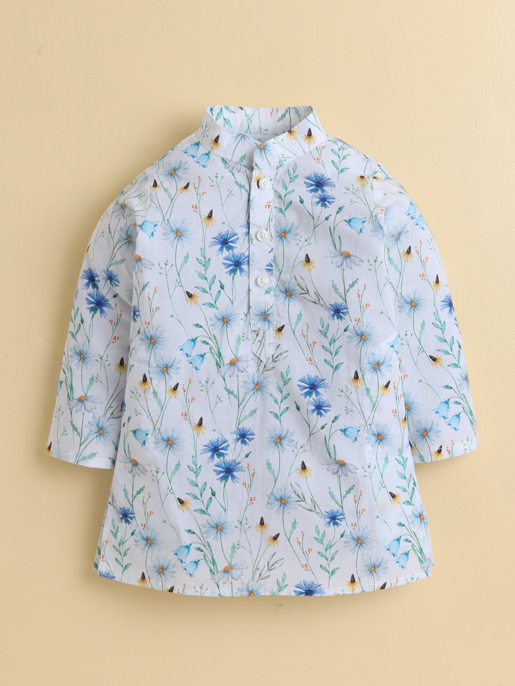 Blue Meadow Cotton Poplin Kurta Pyjama Set