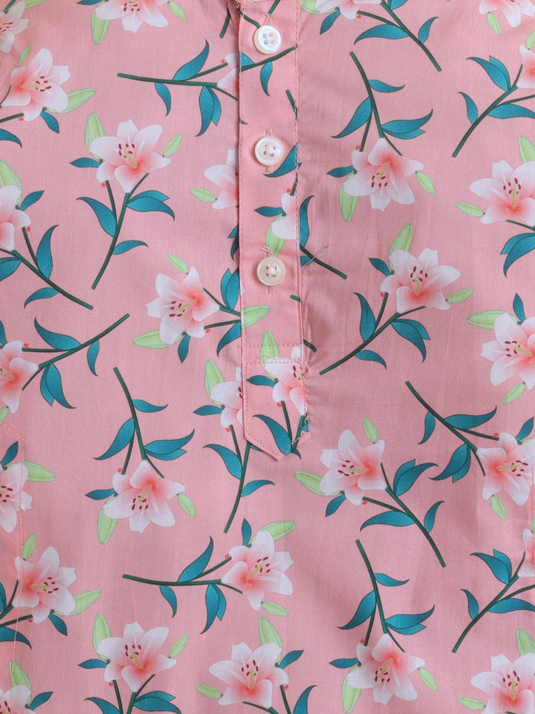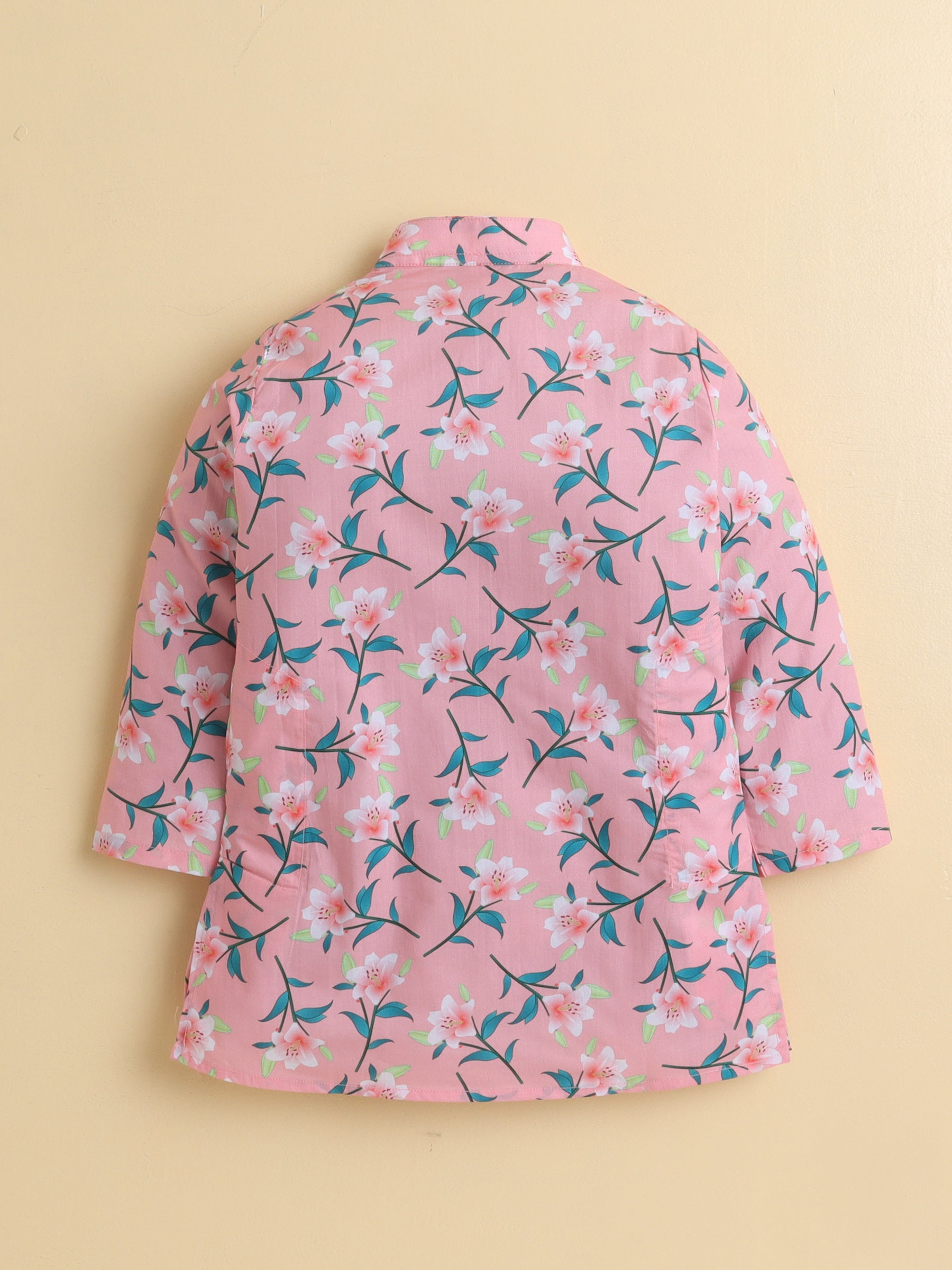 Blush Pink Floral Cotton Poplin Kurta Pyjama Set