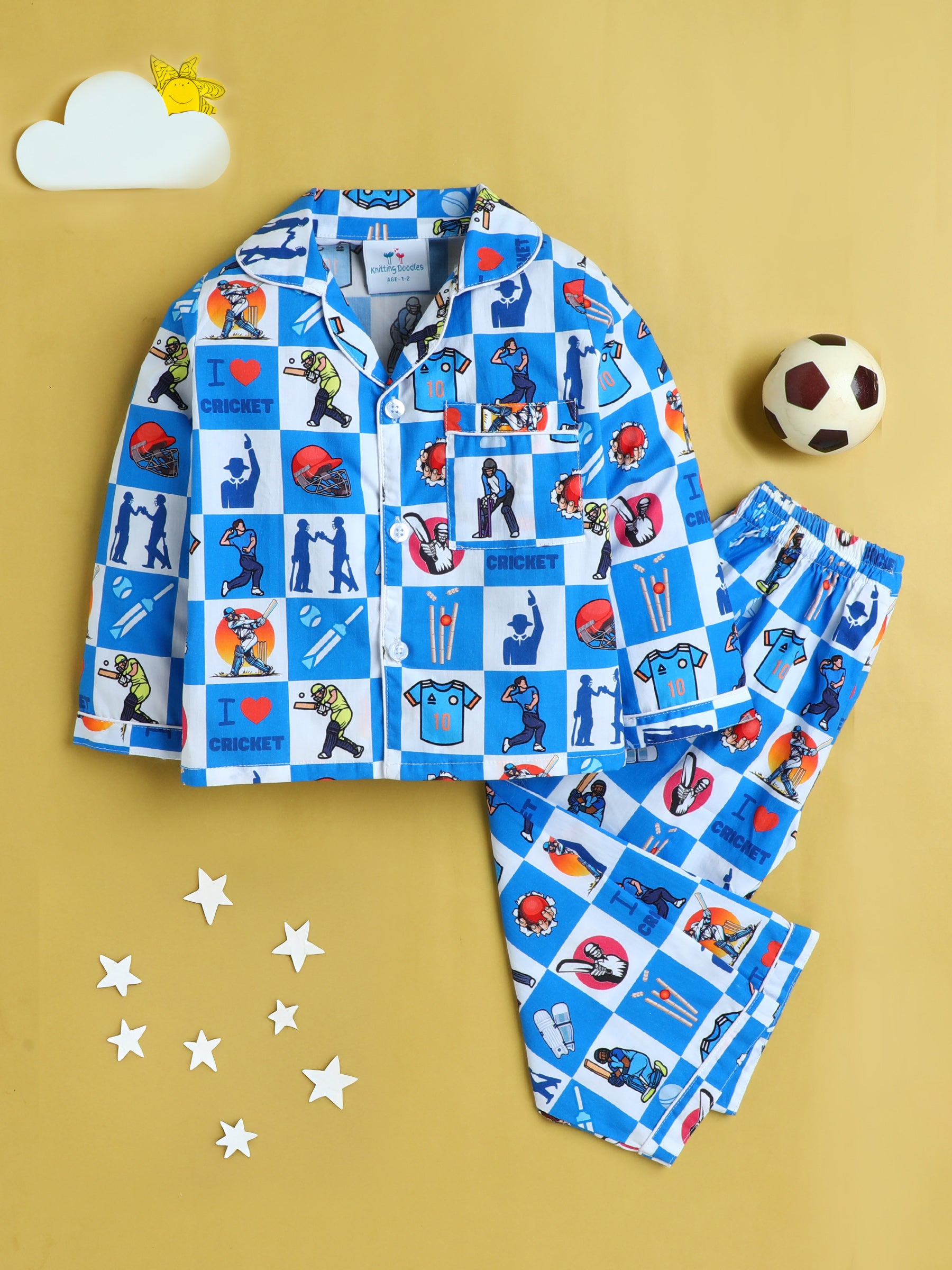 Send your little one on a sporty adventure each night with this cricket print nightsuit—because bedtime should always be a winning game! 🏏✨
