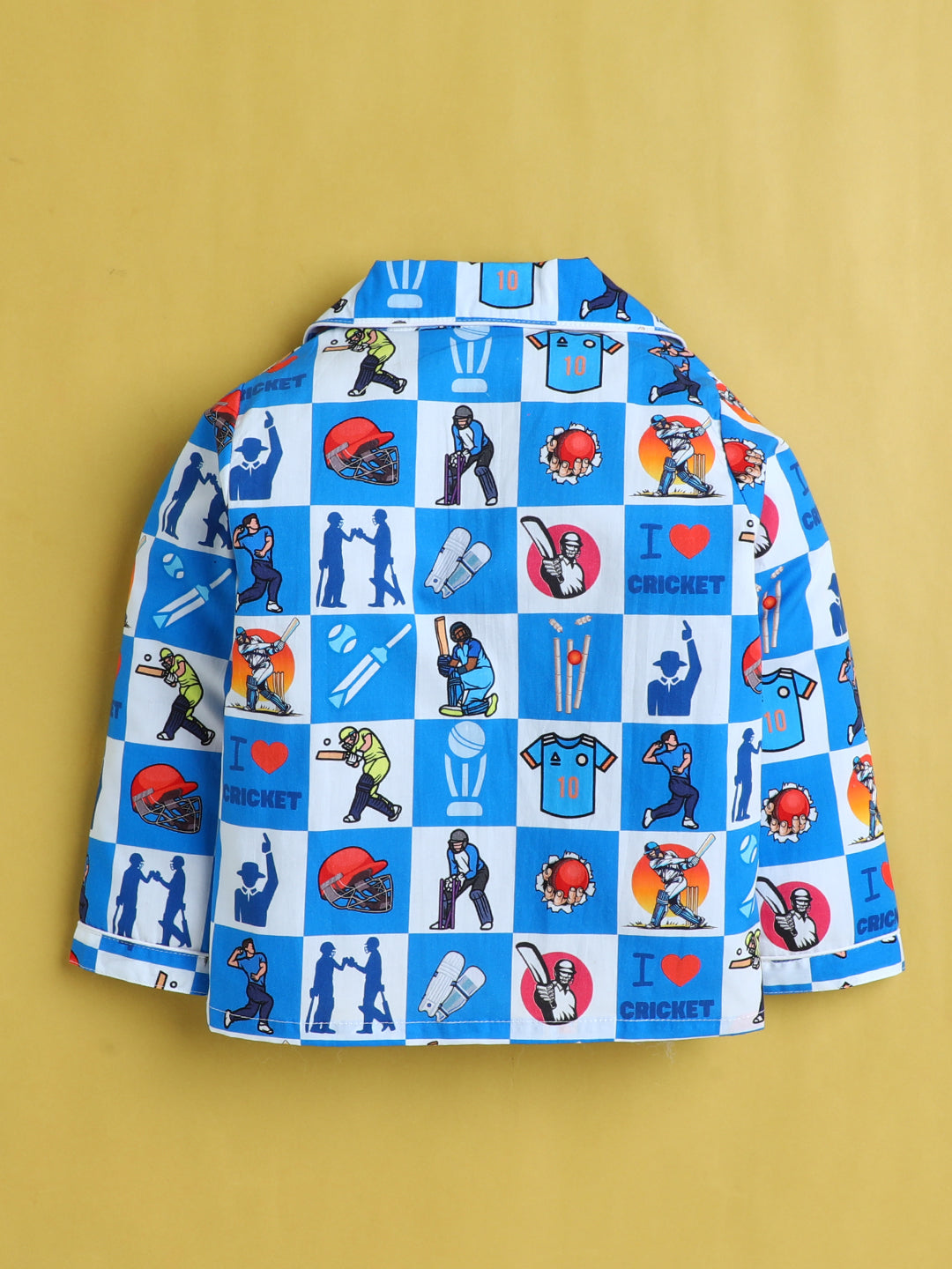 Hit bedtime out of the park with this playful cricket print nightsuit—perfect for little sports enthusiasts! 🏏✨