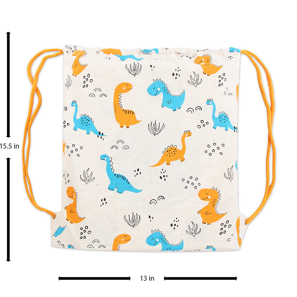 Roar into adventure with our Dinosaur Print Drawstring Bag for kids! Crafted for little explorers and adorned with playful dinos, this bag isn't just for storing treasures—it's a dino-mite companion for every adventure.