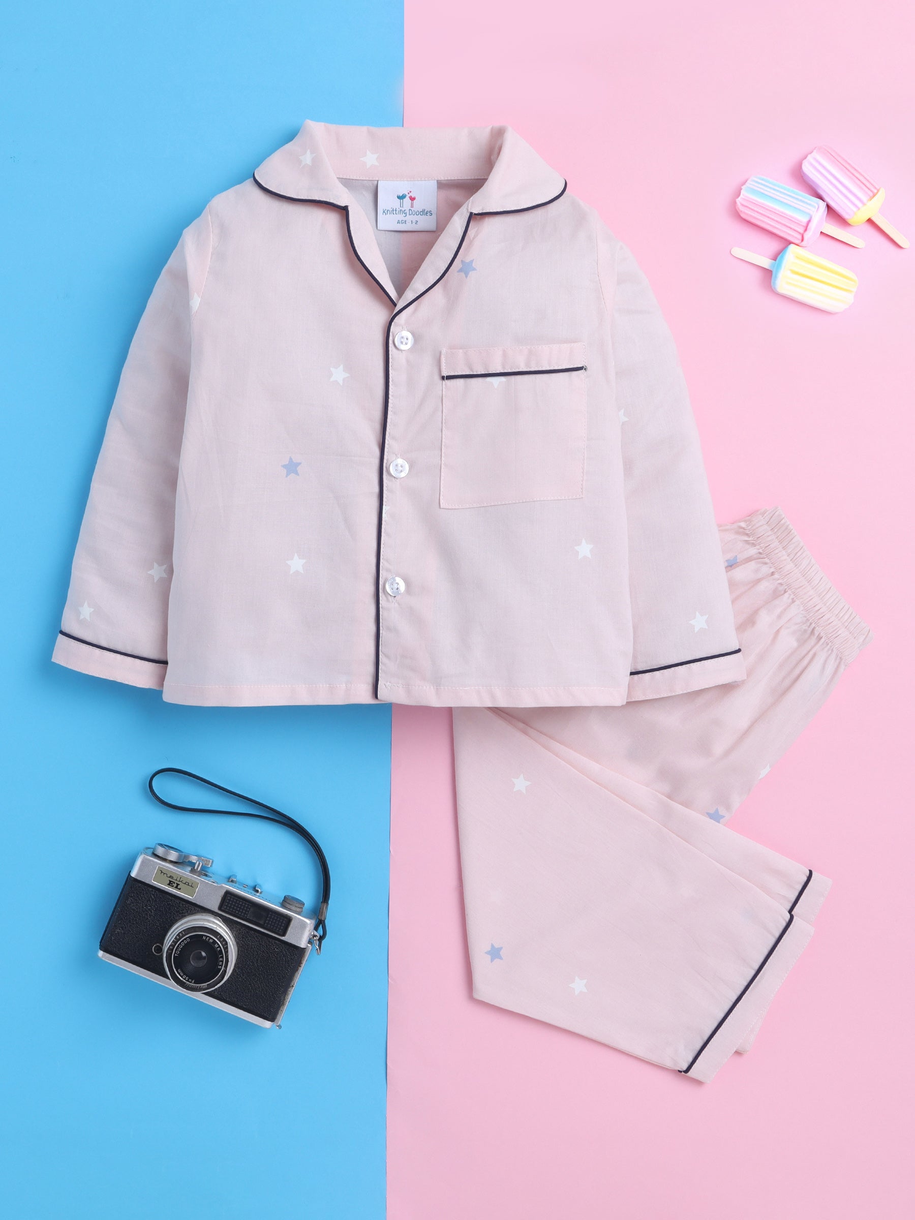Send your little one drifting into a sky full of dreams each night with this all-over star print nightsuit—because bedtime should always sparkle bright! ✨🌙