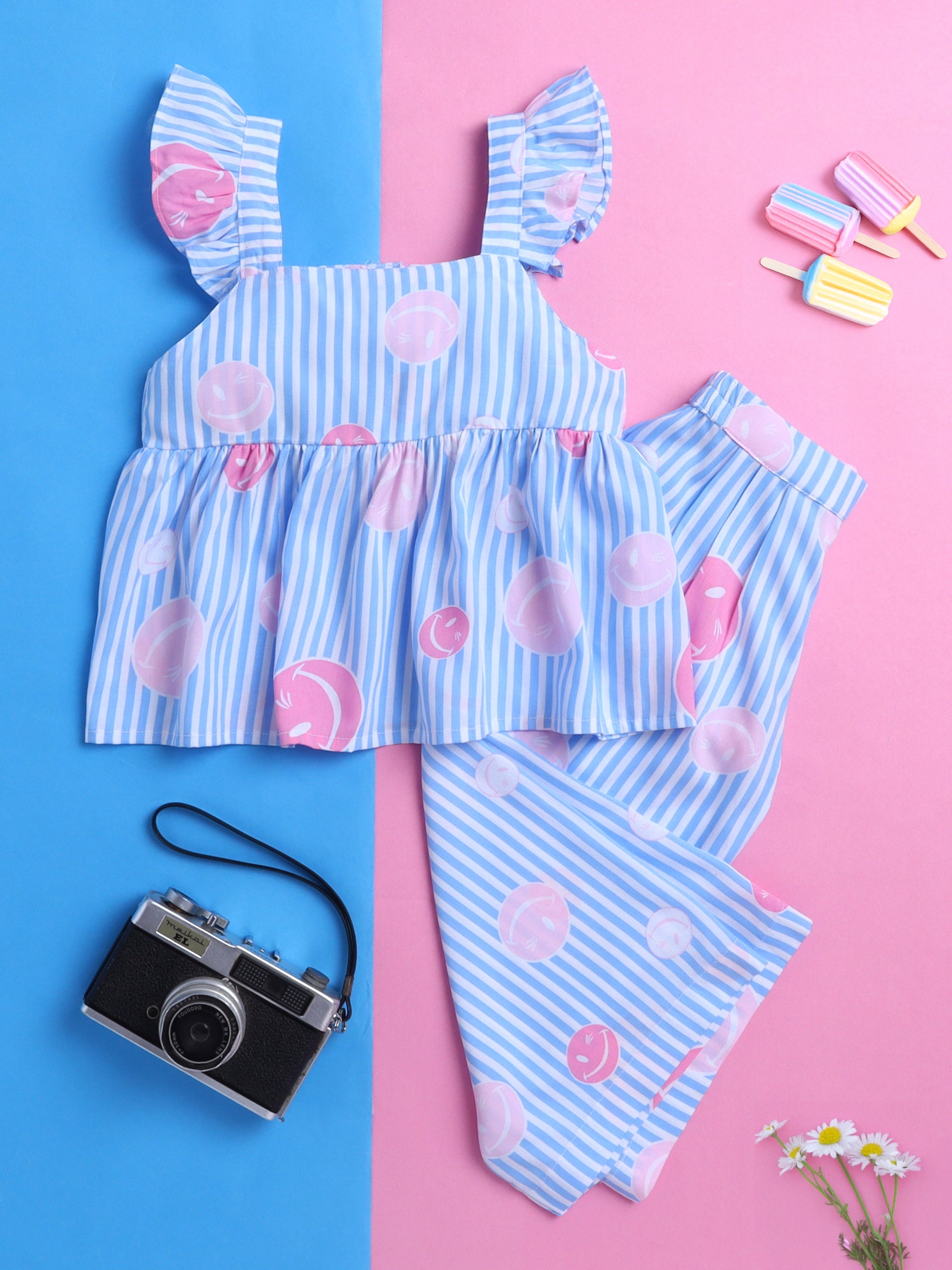 Blue and White Stripes Coord set with Smileys and Pleated Pants